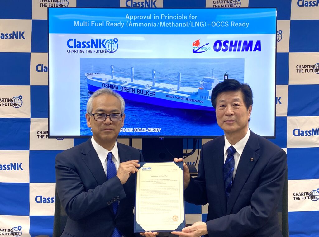 Oshima Shipbuilding Co., Ltd. has acquired Approval in Principle (AiP*1) for Multiple Alternative Fuels Ready (Ammonia/ Methanol/LNG) and OCCS*2 Ready from Nippon Kaiji Kyokai (ClassNK).